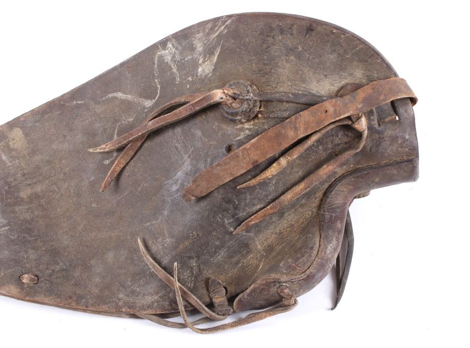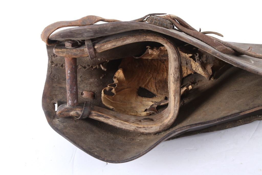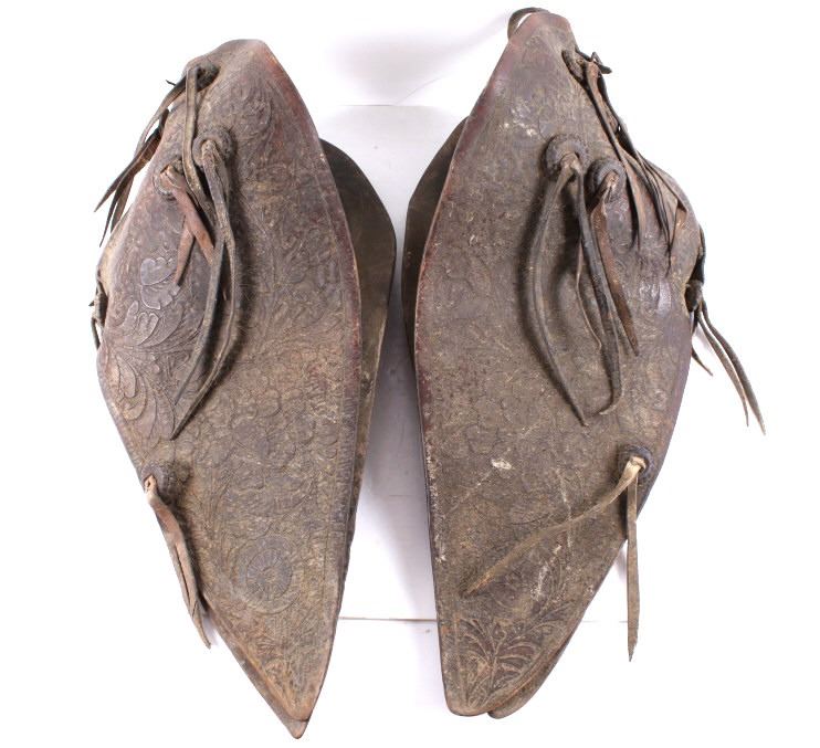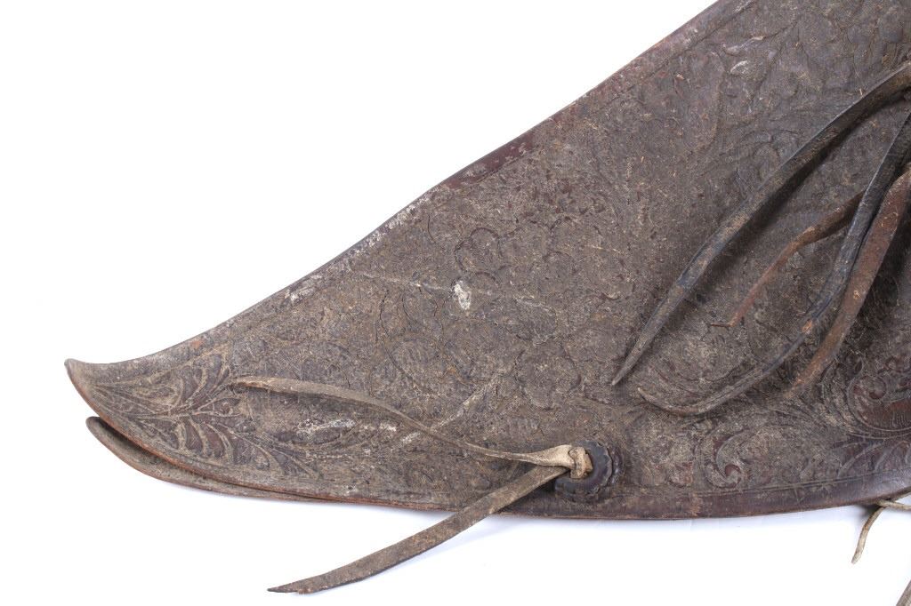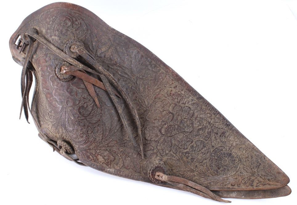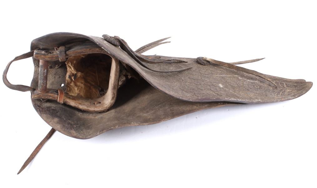 For your consideration is a pair of tooled leather western Tapaderos attributed to Al Furstnow. These Tapaderos covers are expertly tooled with a beautiful floral western design. These Tapaderos are unmarked but are extremely similar in style to that of predominant maker Al Furstnow. A tapadero prevents the rider's boot from slipping through and also prevents brush encountered while working cattle on the open range from poking through the stirrup, injuring or impeding the horse or rider. The leather is in good condition but should be cleaned and oiled. The Tapaderos measure approximately 26” x 8” x 11 ¾”.
