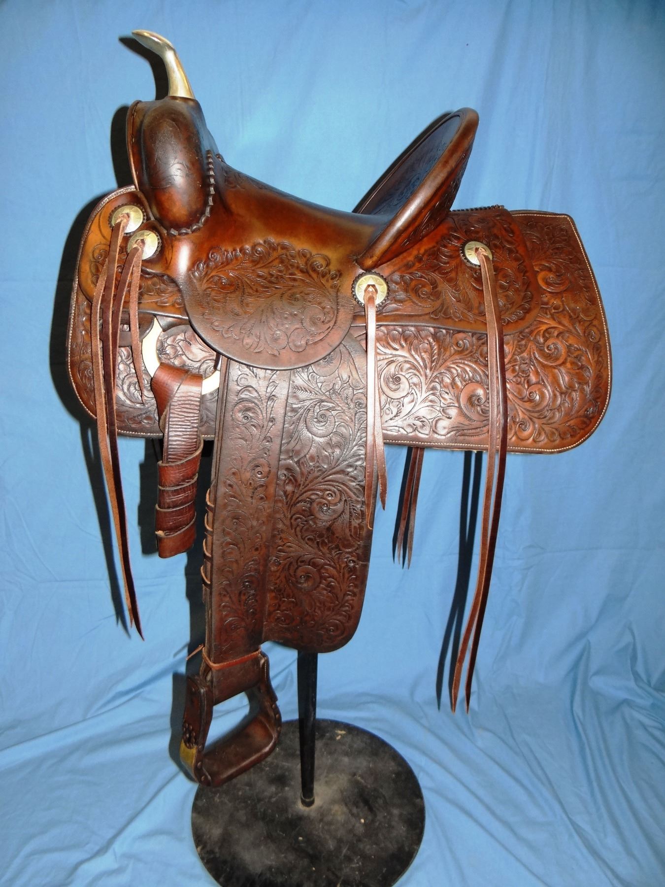 Al Furstnow full carved saddle, square skirts, Catalog #115, very high condition