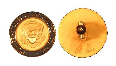 Pair of Vice President Gore's official high-end cufflinks known as the traditional style in mint, unused condition. In the original white facsimile signature box, with Gore's signature engraved on the back of each cufflink. The Vice Presidential seal is die-cast two-color.