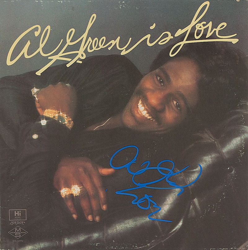 Al Green Is Love album signed on the front cover in blue ink. In fine condition, with a light ‘ring of wear’ to front cover. The record is not included.