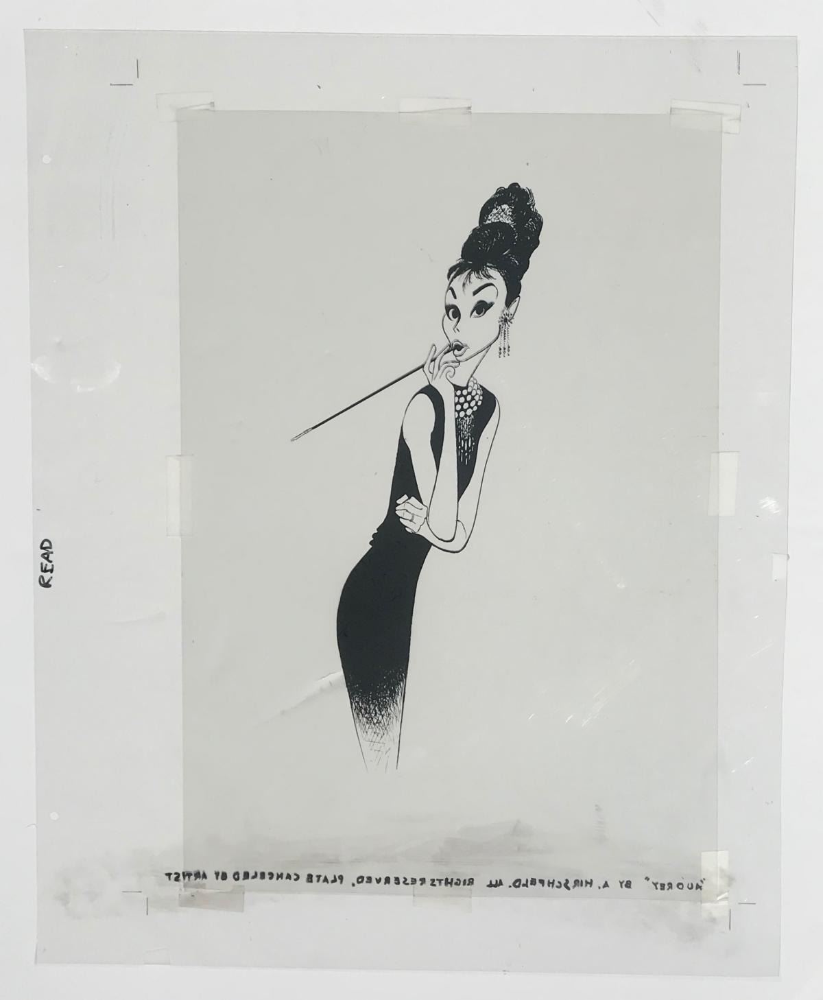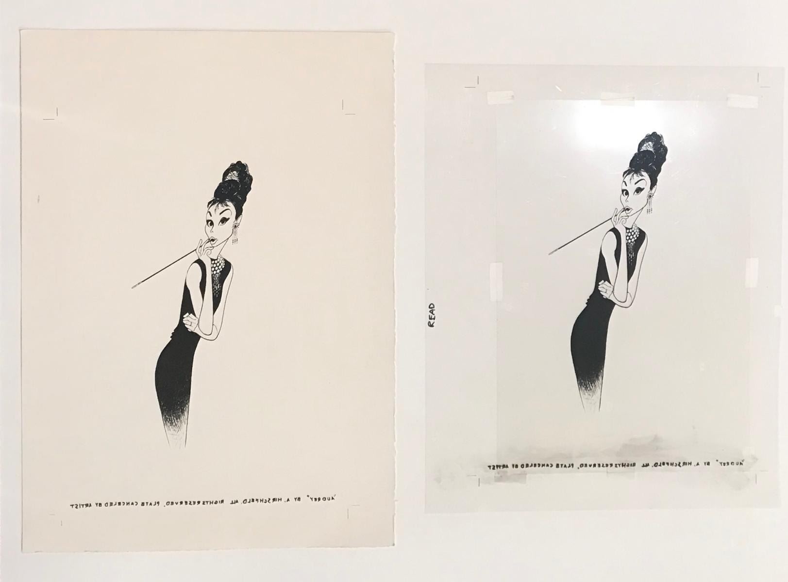 Extremely rare original mylar screens use to crate the sold out limited edition lithograph titled "Audrey " by the famed artist Al Hirschfeld. Additionally included in this lot is the last print made printed on arches paper . Mylar measures 20.5x25 1/4 inches. Paper measures 21x29 inches