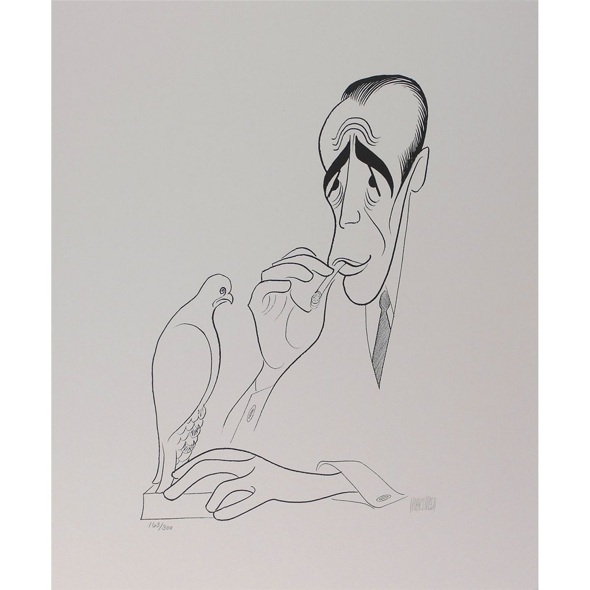 Limited edition 14.75 x 18 lithograph of Humphrey Bogart as Sam Spade in The Maltese Falcon, numbered 163/300, signed in pencil, “Hirschfeld.” In fine condition.