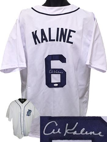 In 1955, Kaline ended the season with a .340 batting average, becoming the youngest player ever to win the American League batting title. On September 24, 1974, Kaline became the 12th player in Major League Baseball history to reach the 3000 hit plateau. Kaline finished his career with 3,007 hits, 399 home runs, and 1583 RBIs. He batted over .300 nine times in his career to finish with a lifetime batting average of .297.This is a Al Kaline Detroit Tigers signed White unlicensed custom-prostyle jersey with twill stitched nameplate and numbers. JSA Hologram and Certificate of Authenticity. Size XL