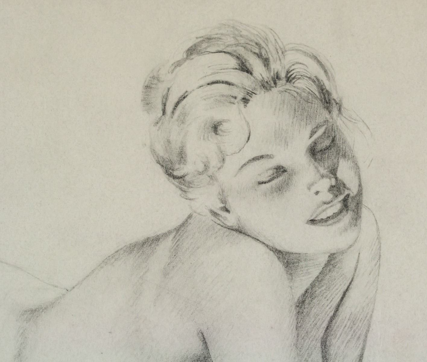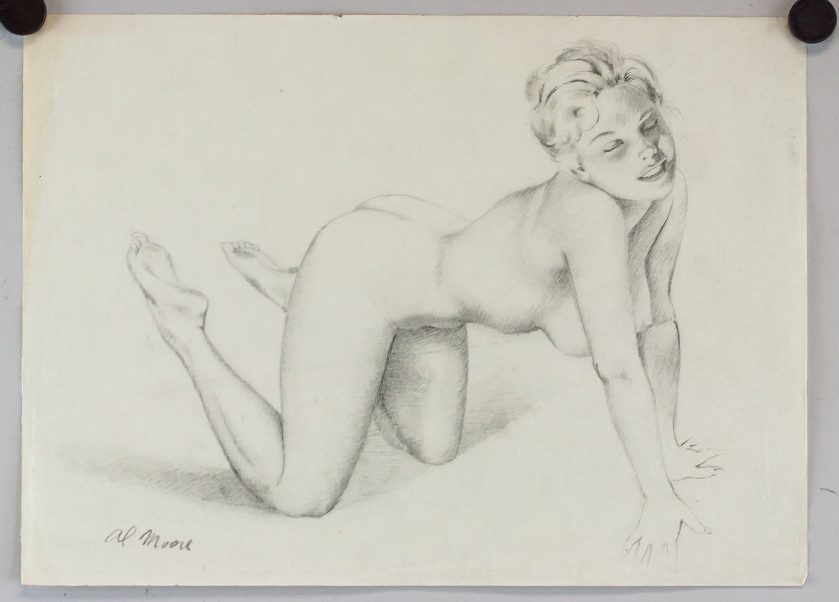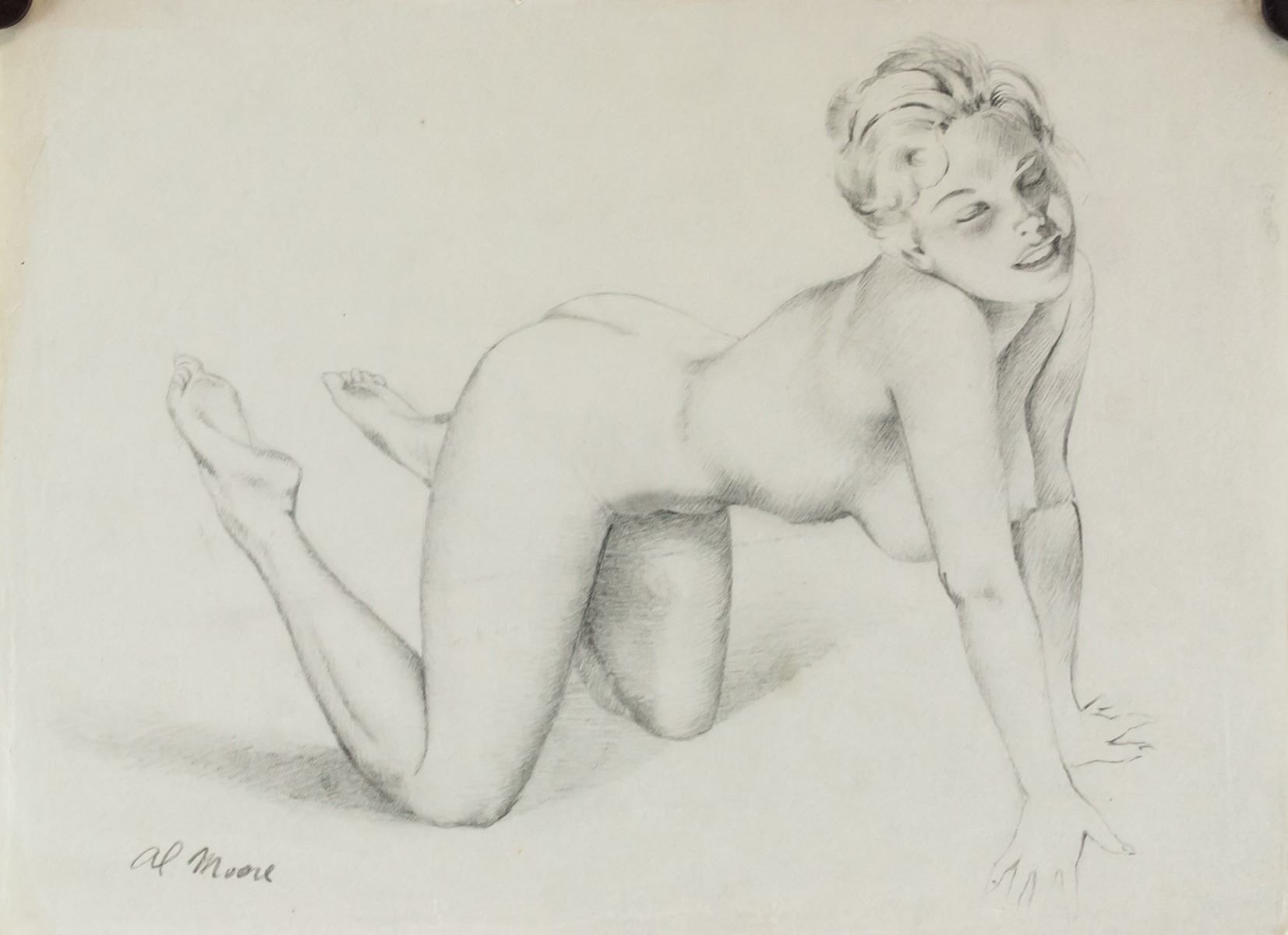 Graphite on paper. Featuring a drawing of a nude woman. Signed Al Moore on the lower left corner. Serial number written on verso. 22.5 x 30.5 cm (8.9 x 12.1 inches). PROVENANCE: Southern Ontario estate