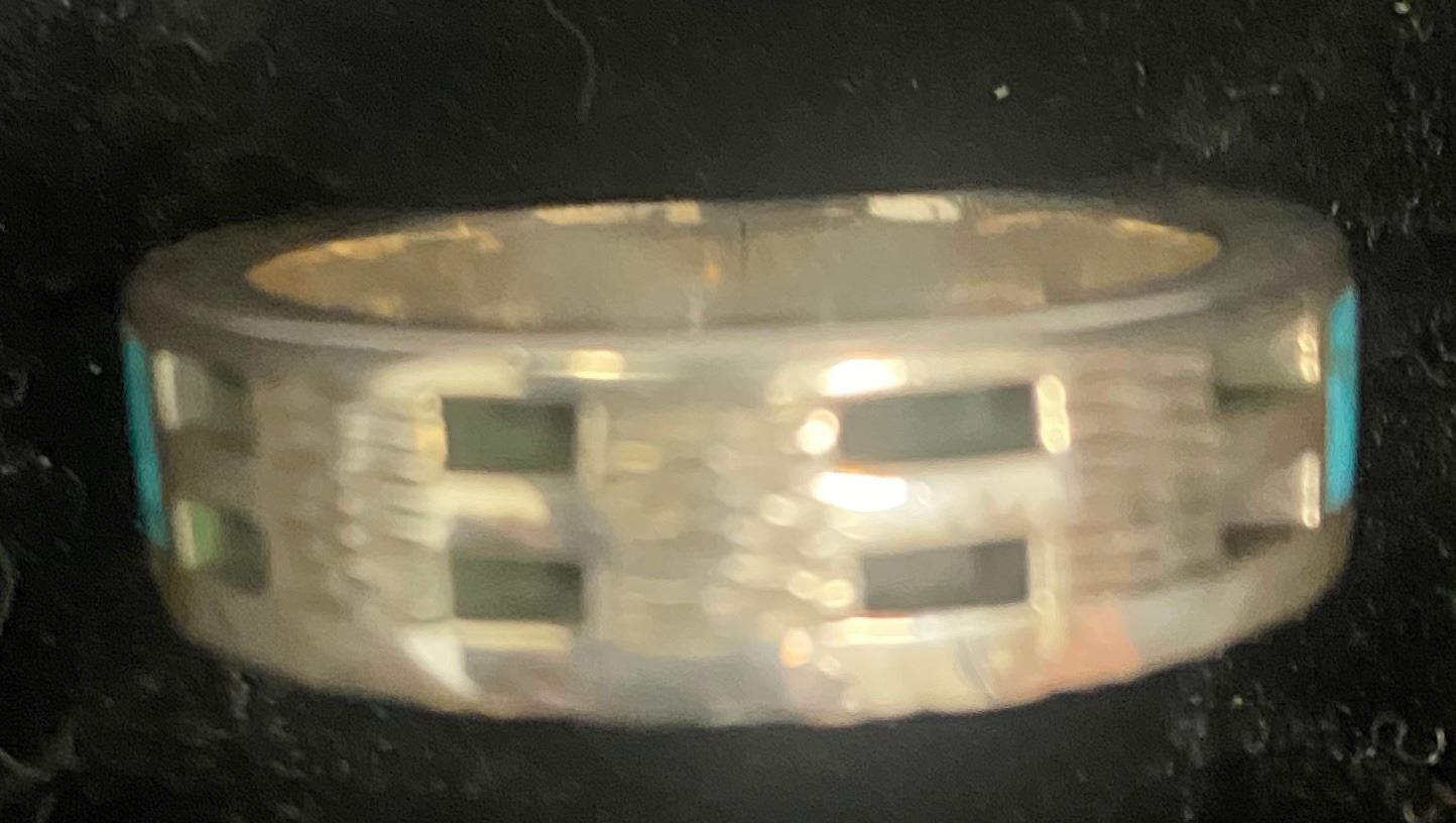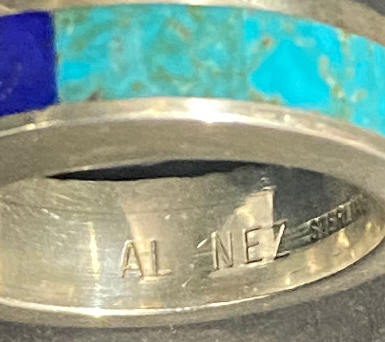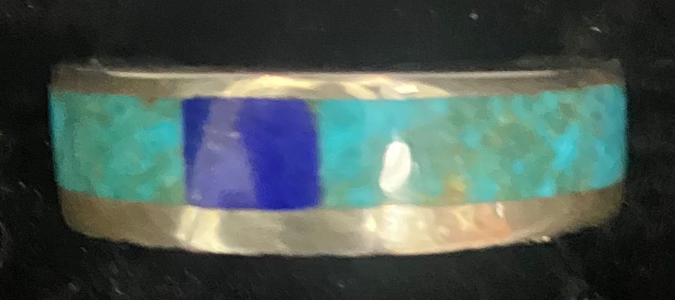 Al Nez, Navajo Inlay Ring with fine turquoise and lapis 1980's