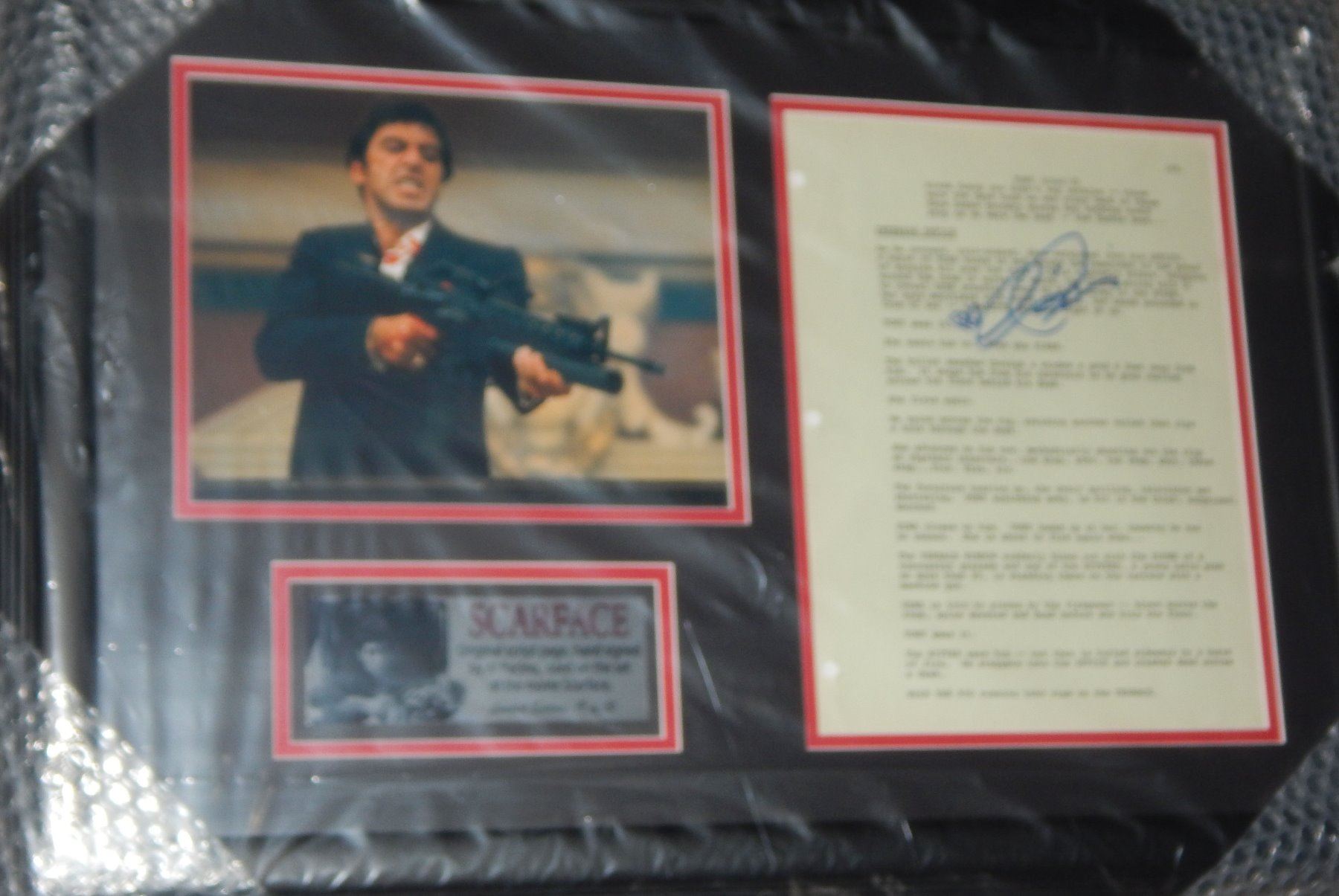 Limited edition framed original page from the personal shooting script of the director of Scarface signed by Al Pacino. All items come with a certificate of authenticity good for the life of the piece.