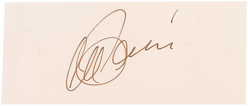 Two items: glossy 8 x 10 photo of Pacino as Bobby Deerfield, signed in brown felt tip; and a felt tip signature, “Al Pacino,” on an off-white 5.25 x 2.25 card. In overall fine condition.