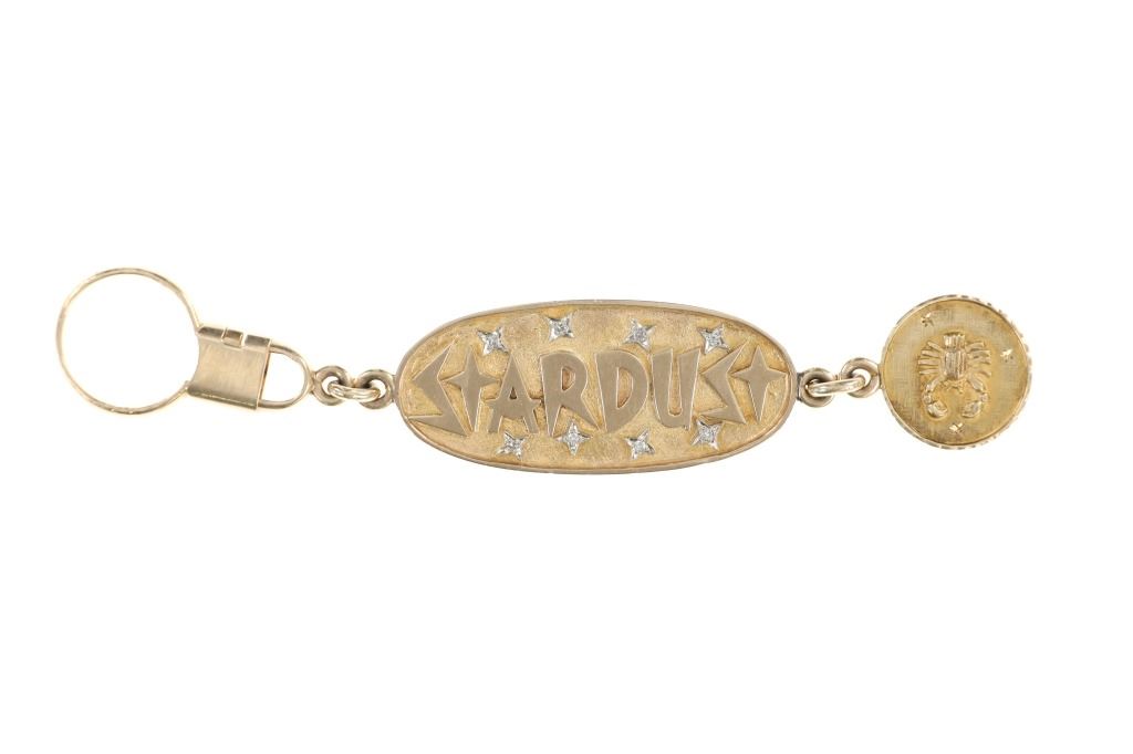 Featured in this lot is this Al Sachs personal 14k yellow gold and diamond Stardust Casino key FOB circa 1970-1980's. Al Sachs is a Jewish man who co owned the casino Stardust with Herb Tobman in 1979. In 1982, federal authorities accused Sachs and Tobman of providing skimmed money to the Chicago mob. An 18-count complaint was filed against Sachs and Tobman, stating that they failed to take appropriate action to stop this latest skimming operation, which totaled more than $1.5 million. The men themselves were not accused of skimming. Gaming officials sought a record $3.5 million fine for 222 alleged gaming violations. This latest investigation was part of an effort to remove Mafia figures from Nevada gaming operations. The Stardust had become infamous for its mob affiliations. A federal agent described it as "the flagship of organized crime on the Strip". The key chain FOB is wonderfully and professionally crafted 14k yellow gold and diamond construction that shows a total of eight round brilliant cut diamonds with good eye clarity with the name of the casino in the center and a scorpion on the dangle part of the FOB. On the other side of the FOB is Al Sachs name along with an upside down pentagram and is marked '14k' next to it. The condition of this personal key chain FOB is good with no obvious signs of damage and shows good overall condition. The measurements of this key chain FOB is 5 3/4" x 1 1/8". The collective weight of this gold key chain FOB is 39.5g.