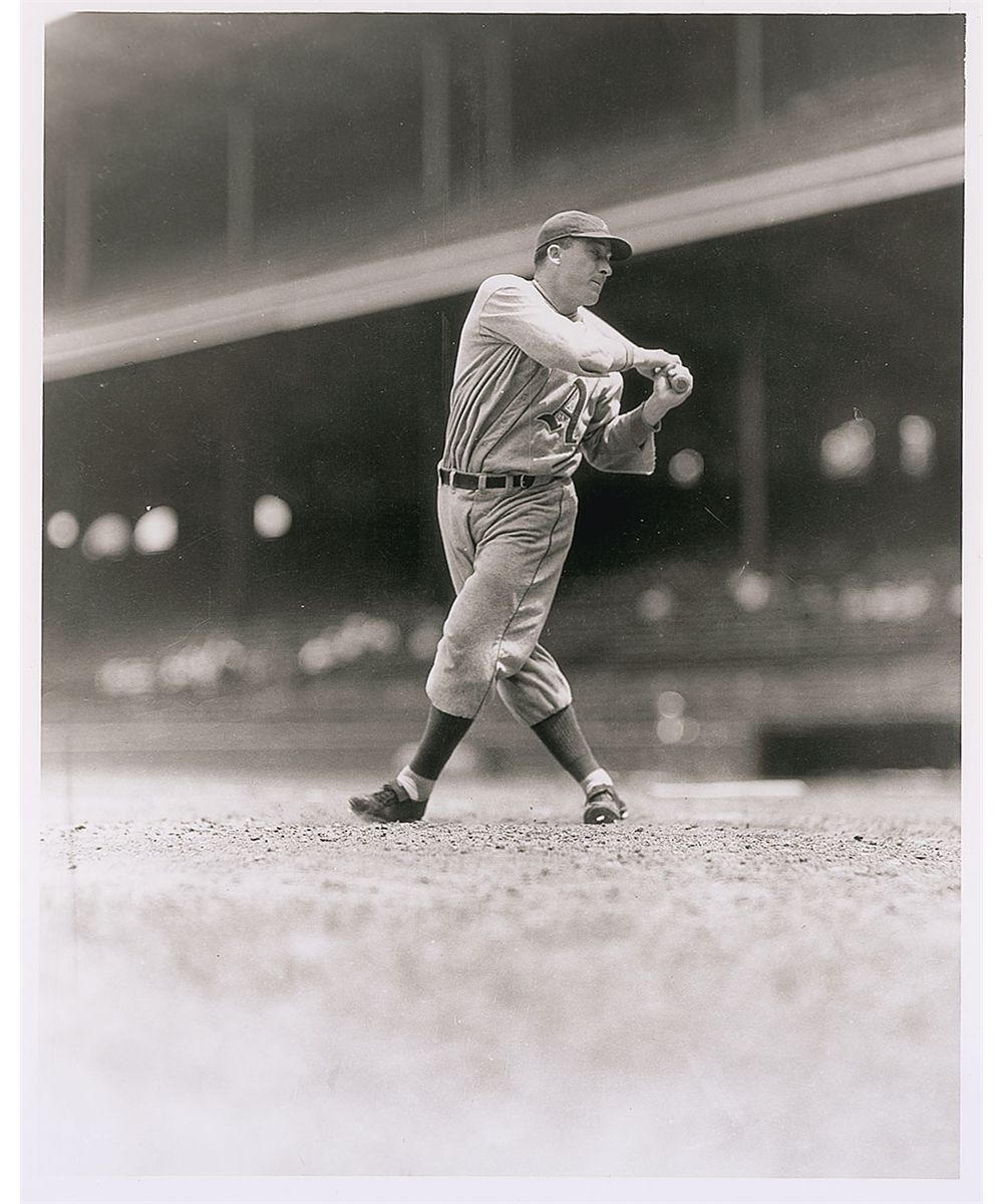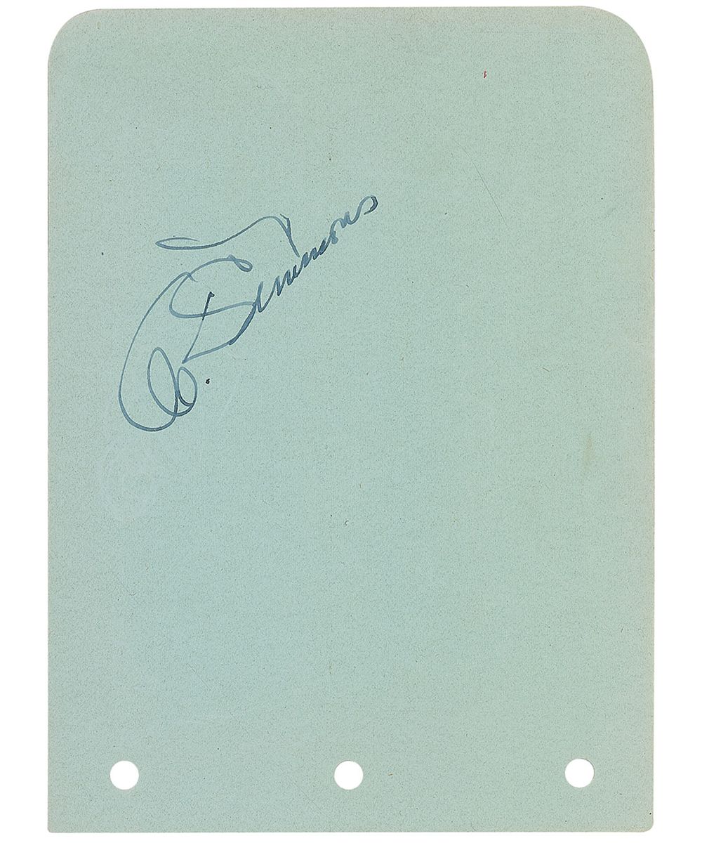 Uncommon vintage fountain pen signature, “Al Simmons,” on a light green 4.25 x 6 album page. In fine condition. Accompanied by an unsigned photo of Simmons.