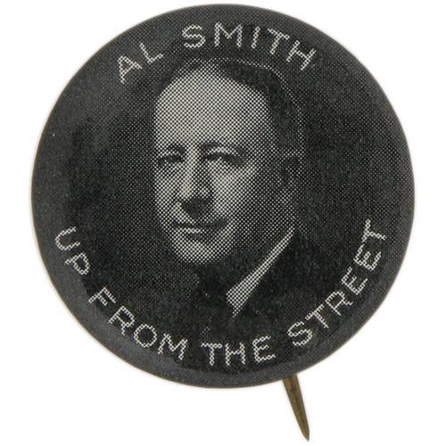 <B>Al Smith: Classic "Up From the Street" 1" Button.</B></I> In excellent condition.<BR><BR><b>Shipping:</b> Miscellaneous Collectibles, Smal (<a target="_blank" href="http://www.heritageauctions.com/common/shipping.php">view shipping information</a>)