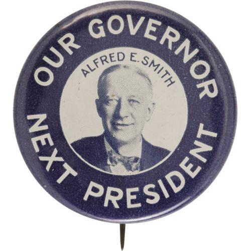 <B>Al Smith: One of the Best 1928 Portrait Designs.</B></I> This 1¾" beauty is in pristine condition and beautifully centered. Only several known examples. One of the prize items in Bob Carter's Smith collection.<BR><BR><b>Shipping:</b> Miscellaneous Collectibles, Smal (<a target="_blank" href="http://www.heritageauctions.com/common/shipping.php">view shipping information</a>)