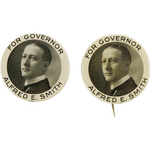 <B>Al Smith: Pocket Mirror & Pinback Rare Large Size 2 1/8" Smith for Governor Pair.</B></I> One is a pinback which has a small rim bump at 9:00 and an incredibly light foxing mark on his eye & forehead. The mirror is in great condition! Infrequently seen.<BR><BR><b>Shipping:</b> Miscellaneous Collectibles, Smal (<a target="_blank" href="http://www.heritageauctions.com/common/shipping.php">view shipping information</a>)
