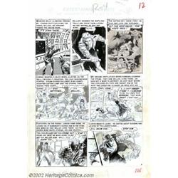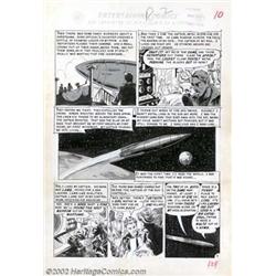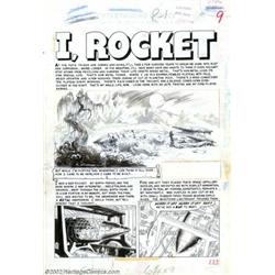 Al Williamson and Frank Frazetta - Original Art for Weird Science Fantasy #20, Complete 7-page Story, "I, Rocket" (EC, 1953). It is impossible to find the right superlatives to describe this masterpiece. Executed with Crafttint, zip-a-tone, textured paper, and ink-wash, this story is a tour de force collaboration of three of the finest artists ever to work in comics: Al Williamson (pencils and inks), Frank Frazetta (some inks), and Roy Krenkel (some background pencils and inks). Each of these artists is a giant in his own right, but there is truly something special in their work on this adaptation of Ray Bradbury's "I, Rocket". Al Williamson did some of his best wash and crafttint work in order to depict the tribulations of the rocket. The ink must have just dripped from Frank's pen as he was able to give a sensual feeling to the decaying rocket on the splash page. Frazetta's fine lines are unreproducible and can only be appreciated when the page is viewed in person. Roy Krenkel, another of Williamson's infrequent collaborators, provided the Art Deco rocket interiors and cityscapes. All of this fine art was done to support the haunting quality of Al Feldstein's adaptation. There are some chips, glue stains, and editorial marking in the margins of the page. One small stat attributing the story to Ray Bradbury is missing from the splash. Panels drawn on Crafttint or textured paper have been pasted onto the large pages. All in all, this is a story that its owner will marvel at again and again. Overall size is approximately 15"x 22". Image size is approximately 13" x 18". Important notice: We expect to be auctioning lots at the rate of 200-250 per hour. Sometimes eBay Premier live bid software cannot keep up with that pace, so we strongly recommend that you place a realistic proxy bid now as insurance to avoid disappointment. Also please note that all Heritage/CAA lots purchased through eBay Premier carry a 20% Buyer's Premium. Please make sure you read the Terms and Conditions.