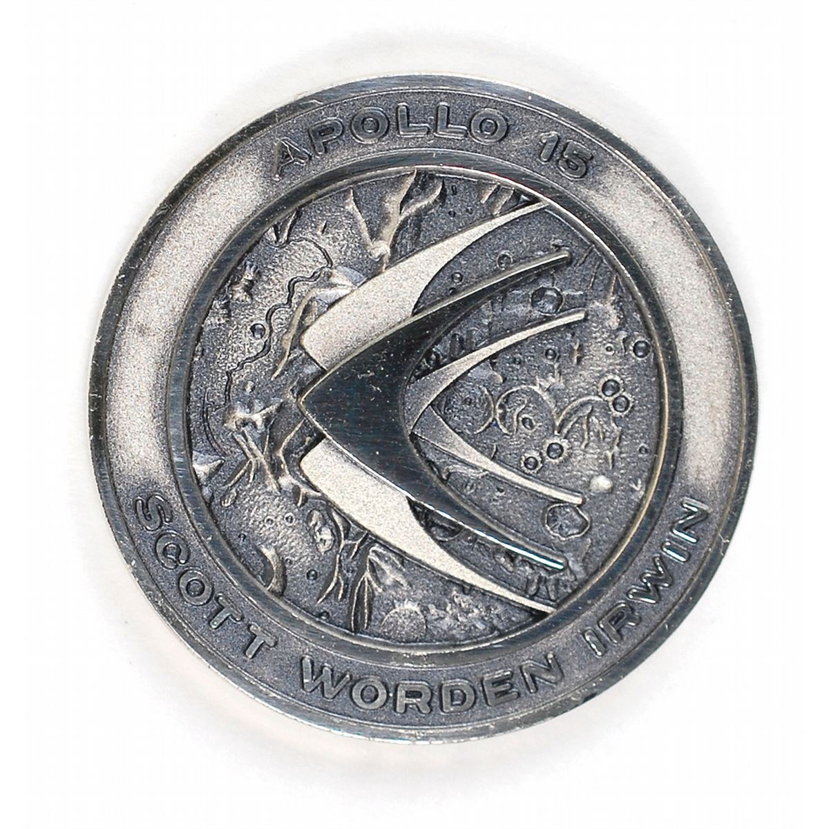 Unflown Apollo 15 Robbins Medal, approximately 1.5? diameter, with a raised design on the face of the Apollo 15 mission insignia. The reverse of the sterling silver medal is engraved “Man’s Flight Through Life Is Sustained by the Power of His Knowledge” along with the July 26, 1971, launch date; July 30, 1971, moon landing date; and August 7, 1971, return date. This medal is serial numbered “303” along the rim and was not flown. Medal comes in its original case, also numbered “303.” Condition is mint state. Accompanied by a signed letter of authenticity from Al Worden, in part: “I hereby certify that this medallion, number 303, has been in my possession since the flight of Apollo 15. It is part of a collection of medallions produced as memento’s [sic], but was not carried on the flight.”