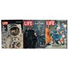 Group lot of three Life Magazines from the personal collection of Apollo 15 astronaut Al Worden: an issue from September 27, 1963, with the front cover headed "The New Astronauts: They go head-over-heels into training," and showing Frank Borman, James Lovell, and Tom Stafford learning to eat in weightlessness during training inside a reduced-gravity aircraft, aka the 'vomit comet'; an issue from February 10, 1967, with the front cover headed "The Nation's Goodby, To Astronauts Grissom, White, Chaffee," and showing Gus Grissom's caisson during the Apollo 1 funeral in Arlington; and a Special Edition issue from August 11, 1969, with front cover headed "To the Moon and Back," and depicting Buzz Aldrin on the lunar surface, with his visor showing a small reflection of the photographer, Neil Armstrong. In overall fine to very good condition, with wear to spines and covers; the front cover to the "New Astronauts" issue is almost completely detached.