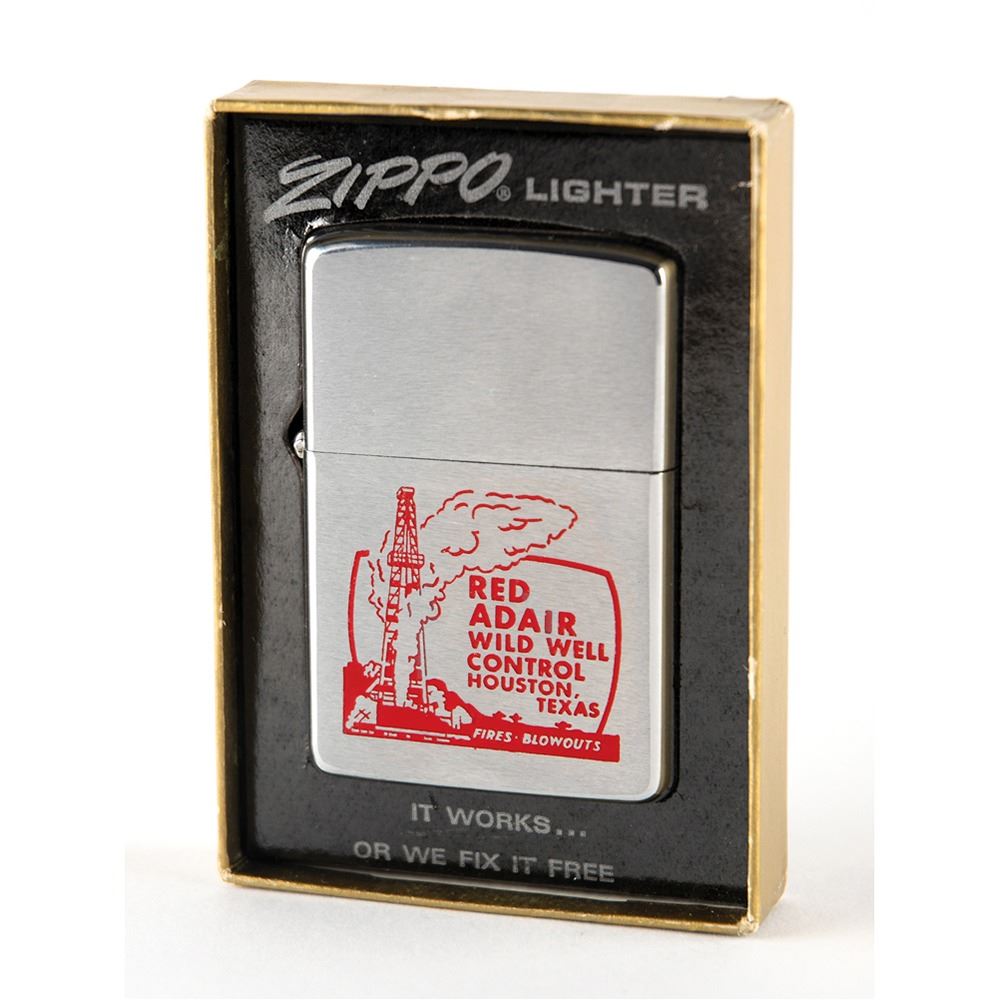 Al Worden's personally-owned Zippo lighter presented to him during a visit to Red Adair Wild Well Control in Houston, Texas, with the front featuring the company's logo and the back reading in red text: "Stolen from Red Adair." Includes the original box. In fine condition, with some wear to box.