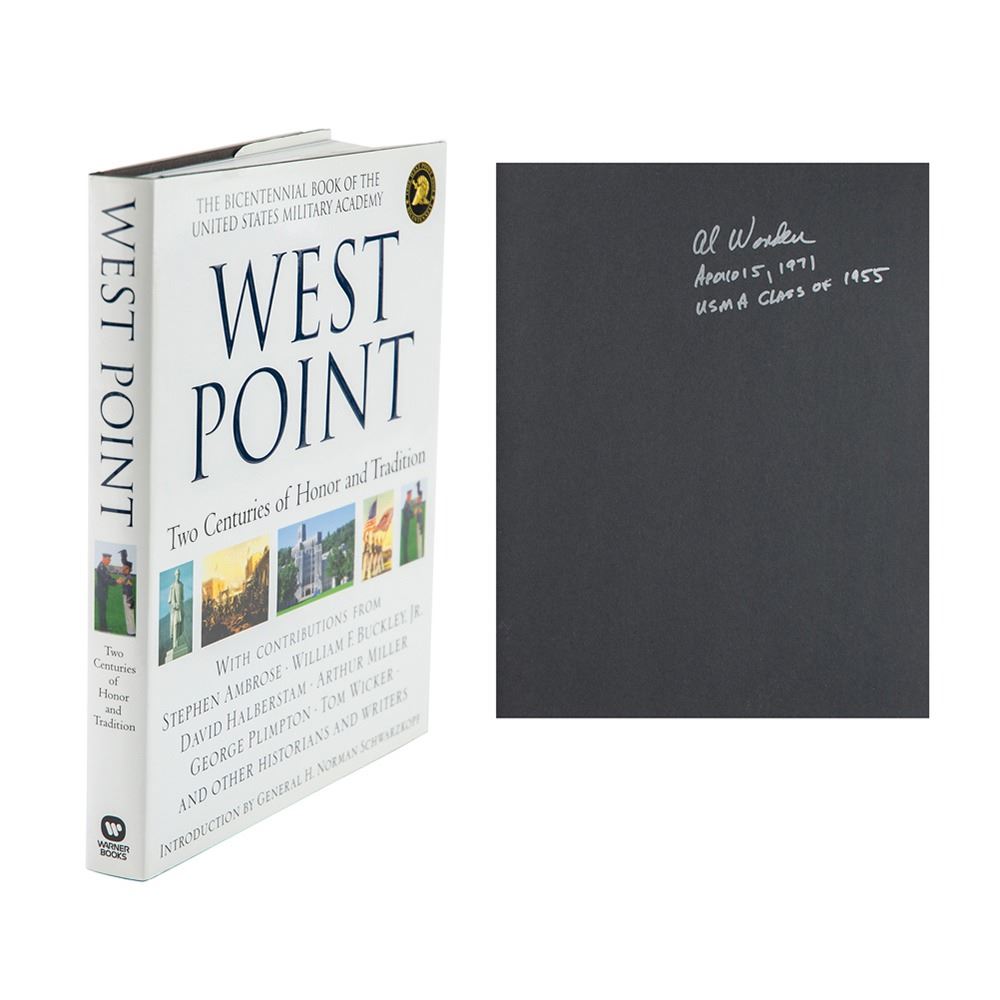 Al Worden's personally-owned signed book: West Point: Two Centuries of Honor and Tradition. First edition. NY: Warner Books, 2002. Hardcover with dust jacket, 9.25 x 11.25, 304 pages. Signed on the first free end page in silver ink, "Al Worden, Apollo 15, 1971, USMA Class of 1955." In fine condition. After graduating from West Point, Worden chose to be commissioned in the Air Force despite no experience as a pilot-the first step on his path toward being selected as an astronaut in 1963.