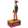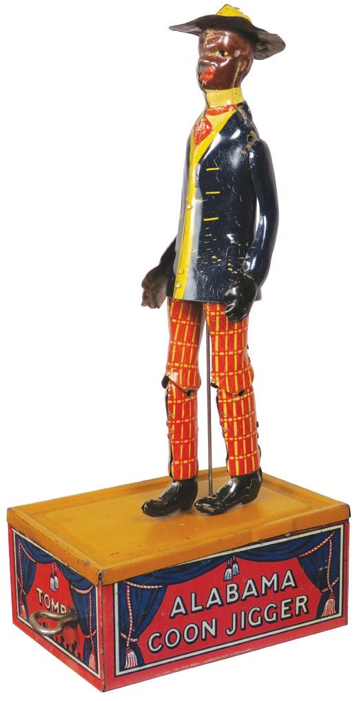 Alabama Coon Jigger "Tombo" Tin Key Wind Toy, blue jacket. Very good condition but Not working. 4 3/4 X 10 1/2 X 3 1/4 inches.