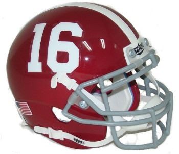 This is an Alabama Crimson Tide unsigned Schutt #16 Authentic Mini Helmet