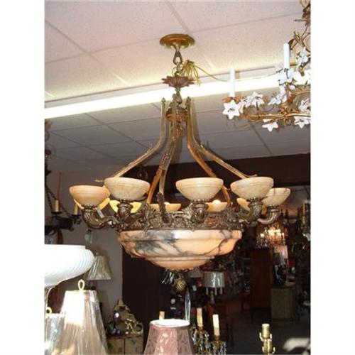 <tr><td>Title:Alabaster Bronze French Chandelier</td></tr>