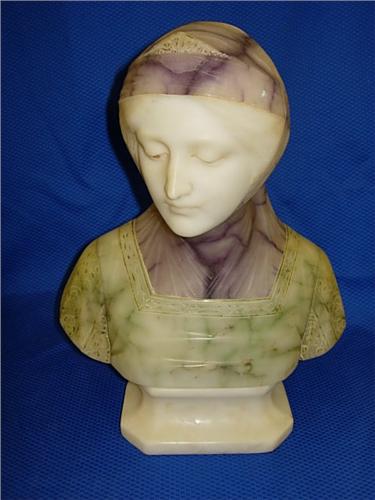 Alabaster Bust of a Woman with Colour, measures 13 1/2" h., 10" w. *noting very minor flea bites