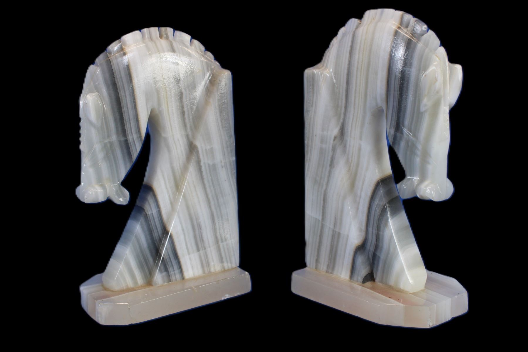 Alabaster Horsehead Bookends- 7.5"