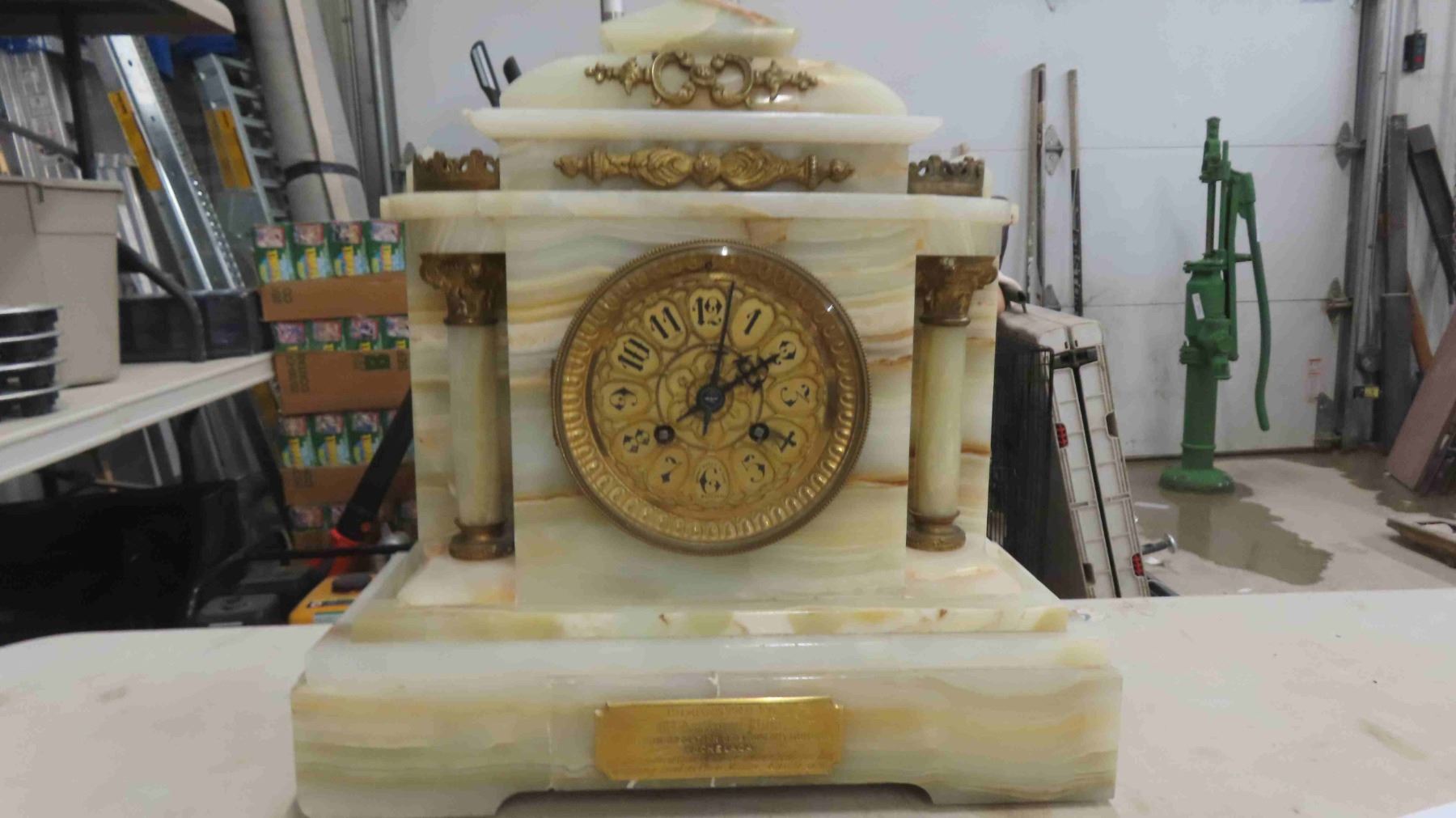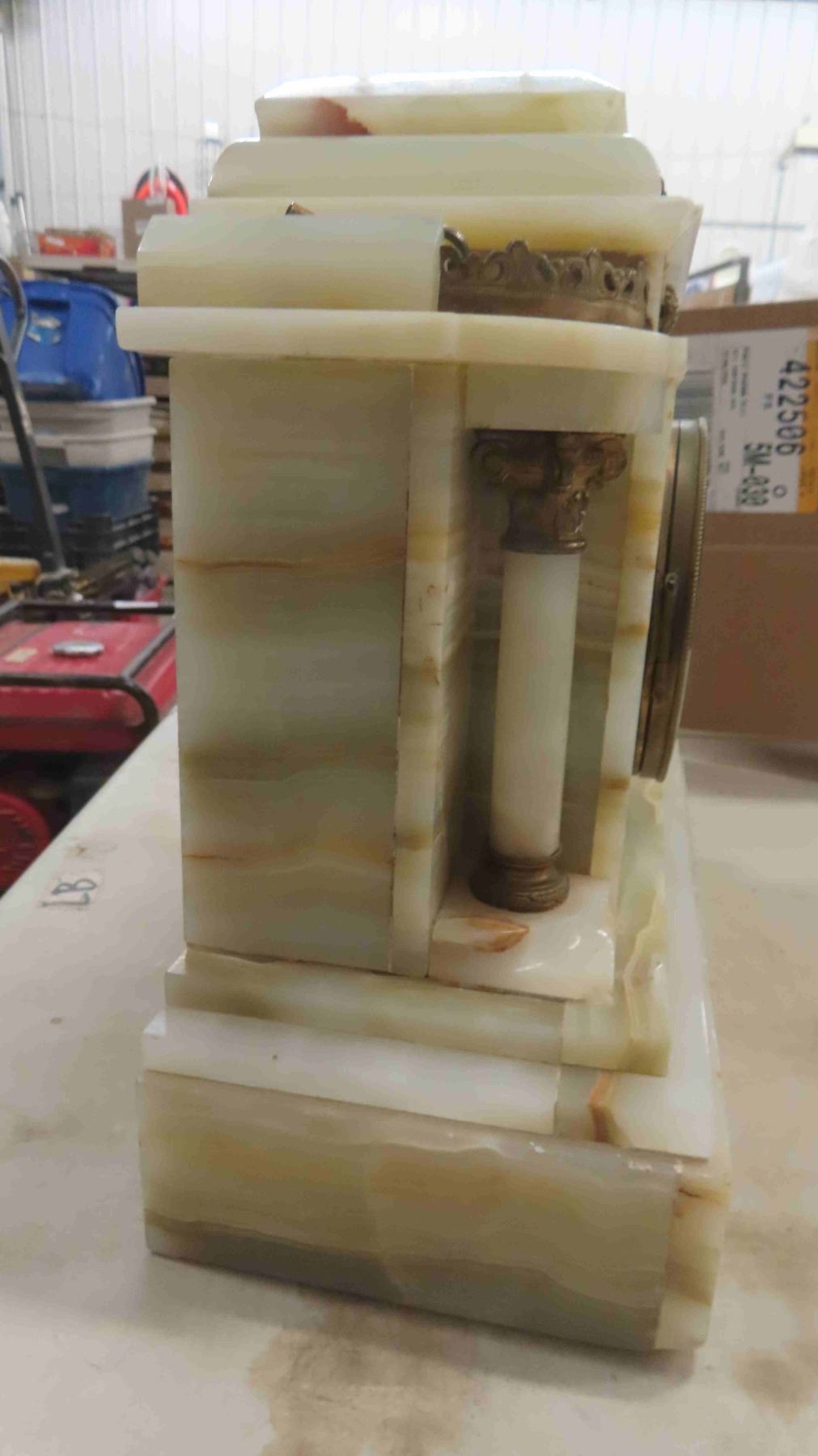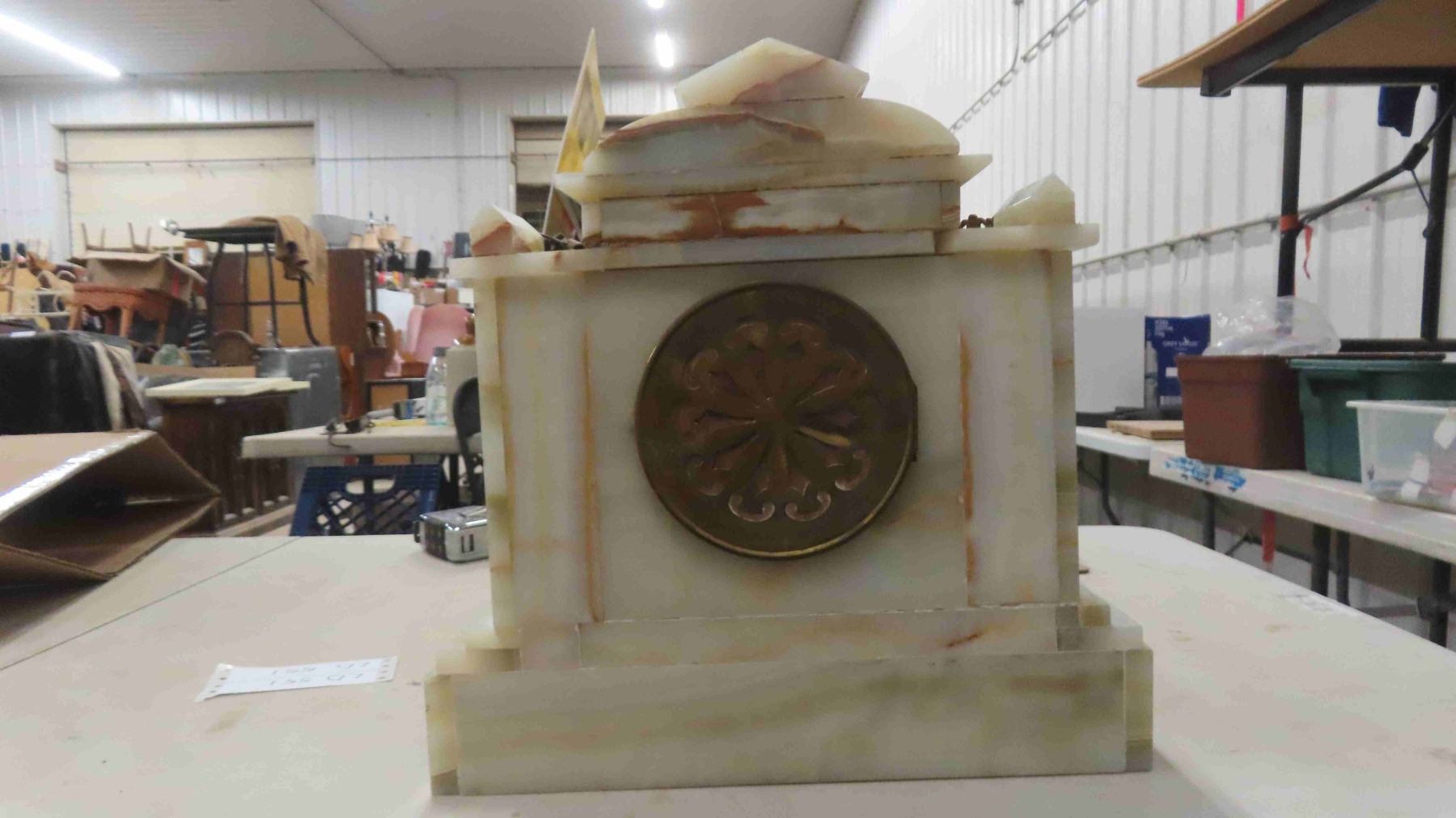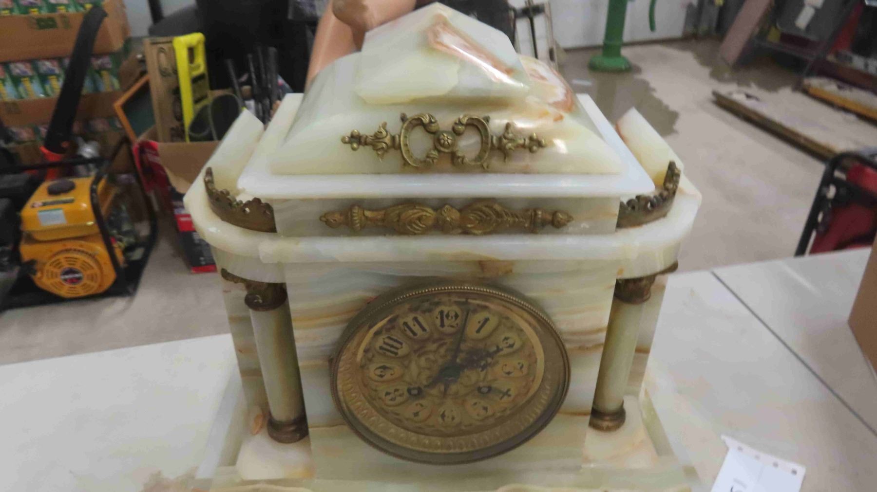 Alabaster Mantle Clock with Key 12 1/2'' x 6'' x 13''