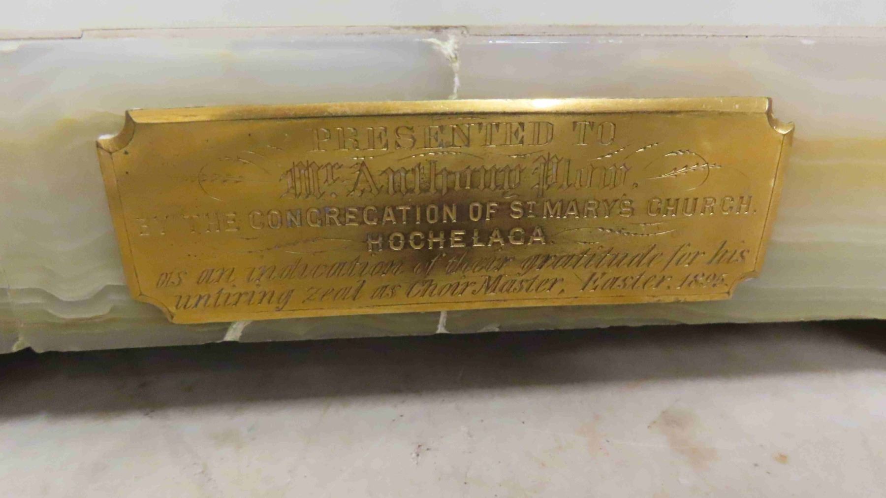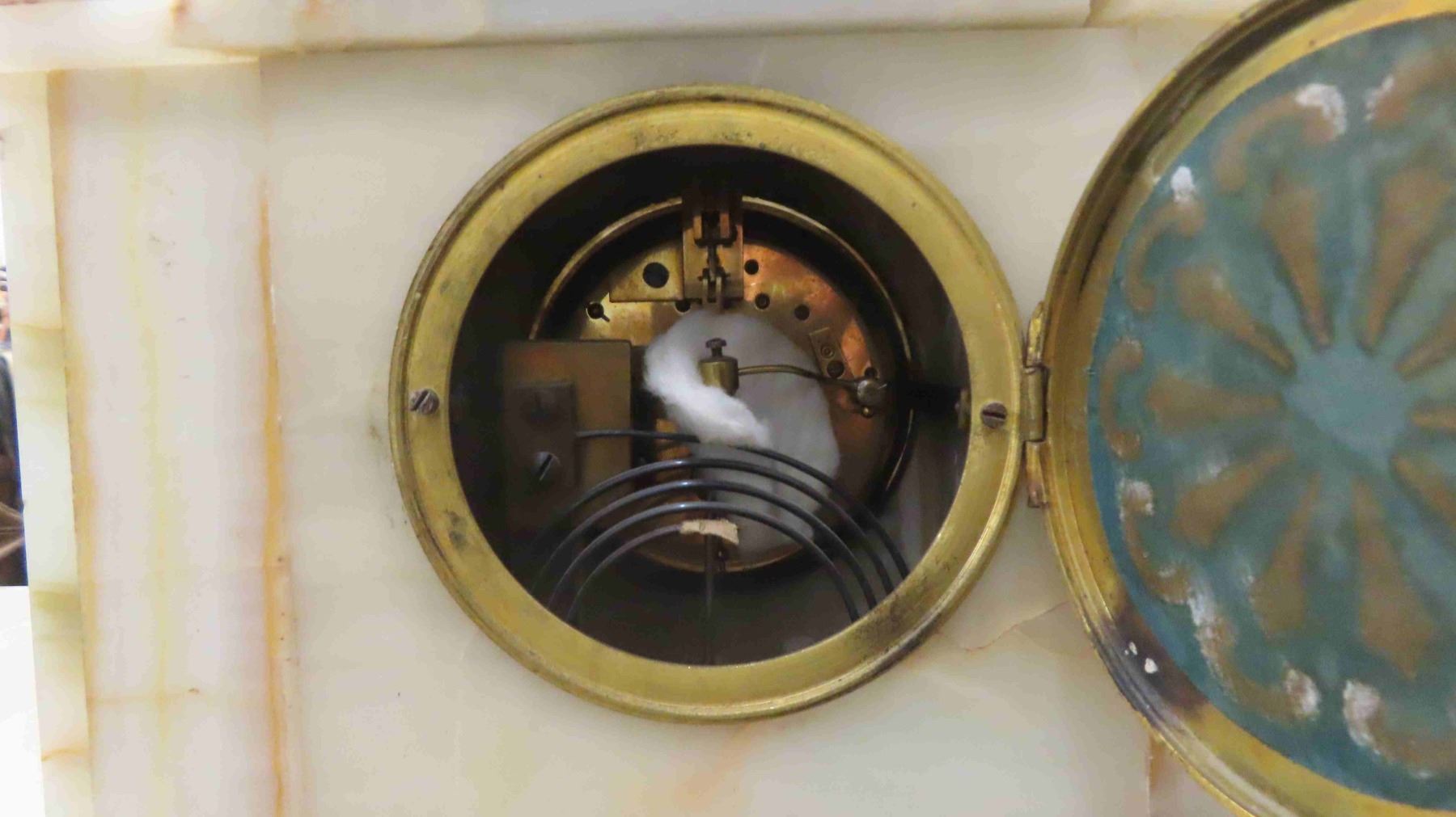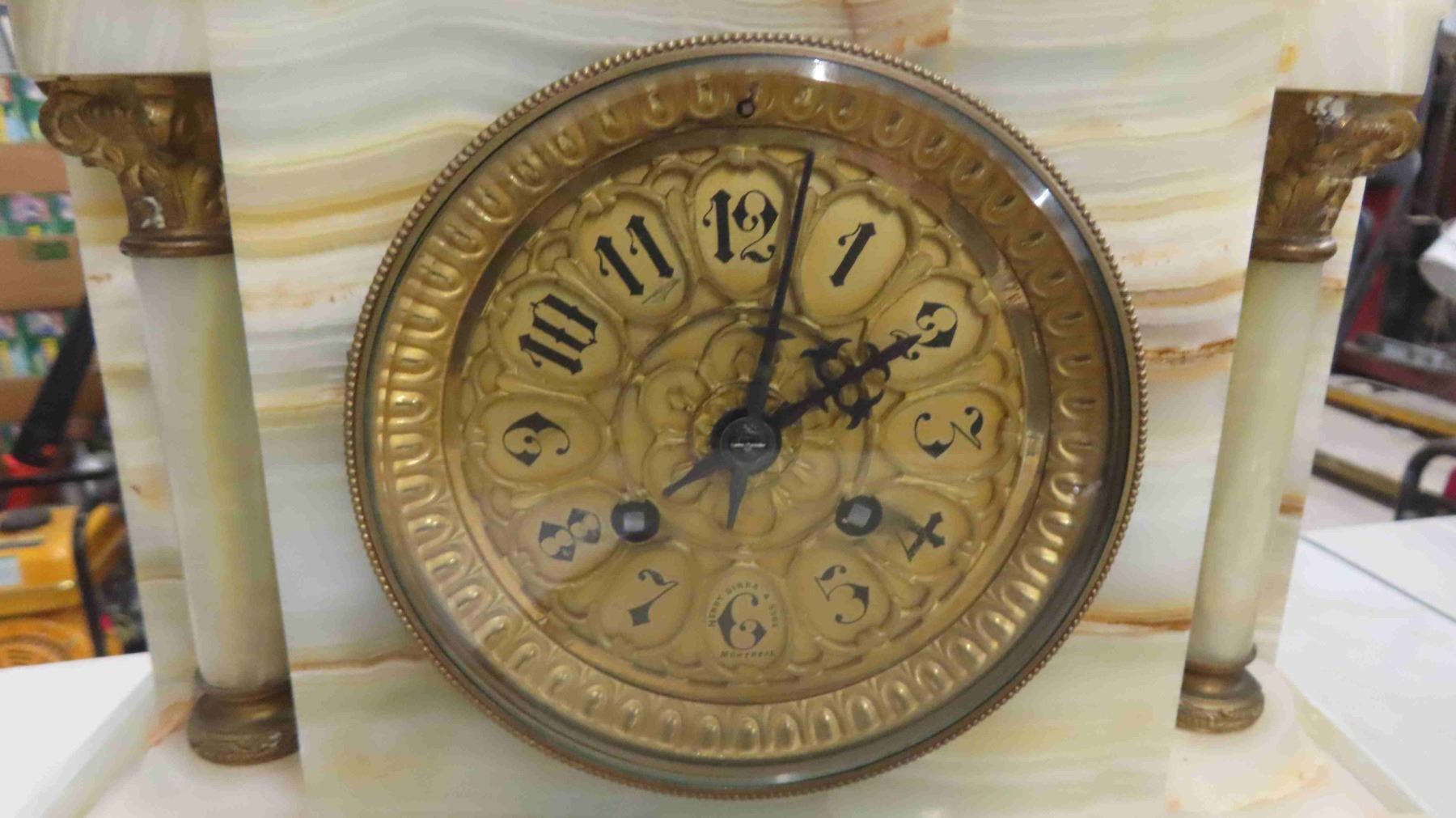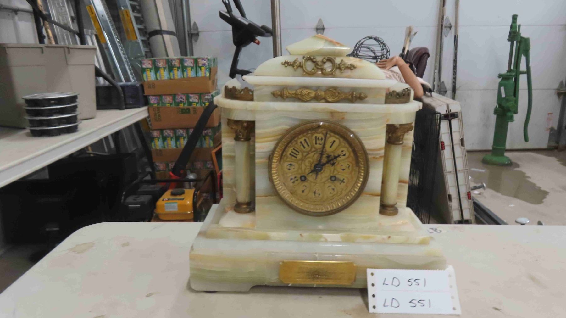 Alabaster Mantle Clock with Key 12 1/2'' x 6'' x 13''