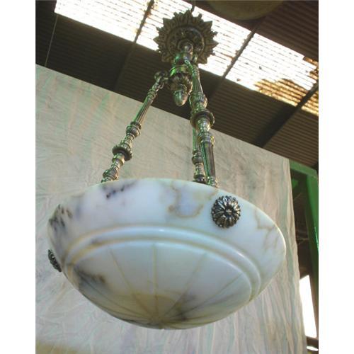 A pendant with alabaster stone and casted bronze of stunning quality.Some assembling may be required. Shipment within USA $ 100. It was rewired to USA standard.Due to the nature of alabaster stone the pictures may not accurately represented the color and pattern of the alabaster.Due to the nature of alabaster stone the pictures may not accurately represented the color and pattern of the alabaster.