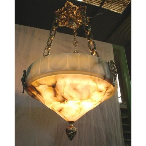 A pendant with alabaster stone and casted bronze of stunning quality.Some assembling may be required. Shipment within USA $ 100. It was rewired to USA standard.Due to the nature of alabaster stone the pictures may not accurately represented the color and pattern of the alabaster.Due to the nature of alabaster stone the pictures may not accurately represented the color and pattern of the alabaster. It takes 4 to 5 weeks to deliver.