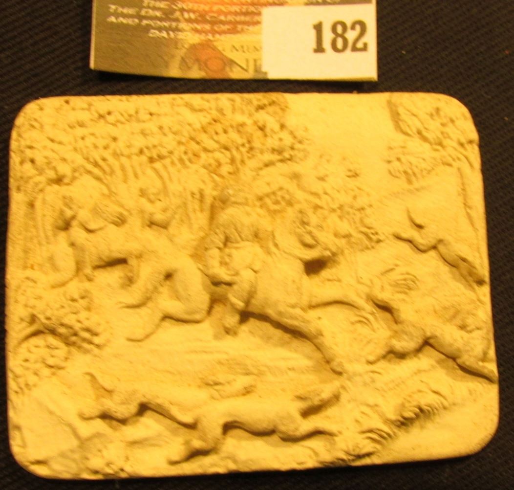 Alabaster Style Inset measuring 2 3/8" x 3" Hunting Scene.