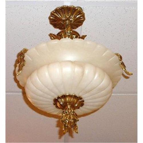 <tr><td>Title:Alabaster and Bronze Chandelier Ceiling Fixture</td></tr>