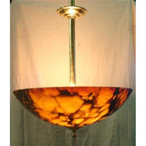 This pendant will look grate in a low ceiling house or apartment. It will be shipped in two crates, one with the alabaster component the other one with the bronze component. Some assembly will be required. The shipping cost within USA is $ 100.00. This item was rewired to USA standars. Due to the nature of alabaster stone the pictures may not accurately represented the color and pattern of the alabaster.