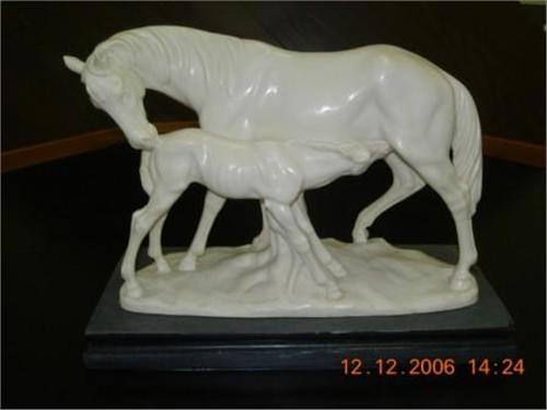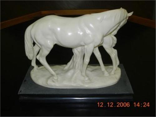 Inscription says A. Santini. Item is approximately 10.5" tall and 13.375" wide. There is a small crack in one of the horses legs.