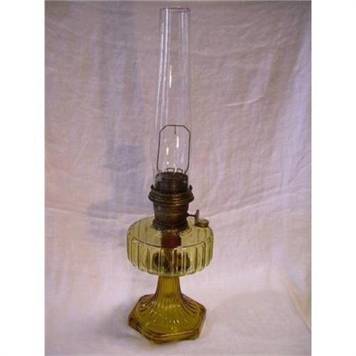 Up for sale is one Aladdin Model B Table Model Amber Color Kerosene Lamp. I'm not an expert on Aladdin, but I'm guessing this lamp is from the 1930's based upon the glass color and the discoloration of the metal parts. Condition is good; I don't see any damage to the glass bottom or to the chimney. The metal burner has discolored from age (and probably from heat) and does not look shiny or new. There may be a part or two missing (I don't know), but I've tried to give accurate photos so that you can know what's included. The lamp is 23.5" tall (including the chimney). If you have any other questions, please email us. Thanks for looking!