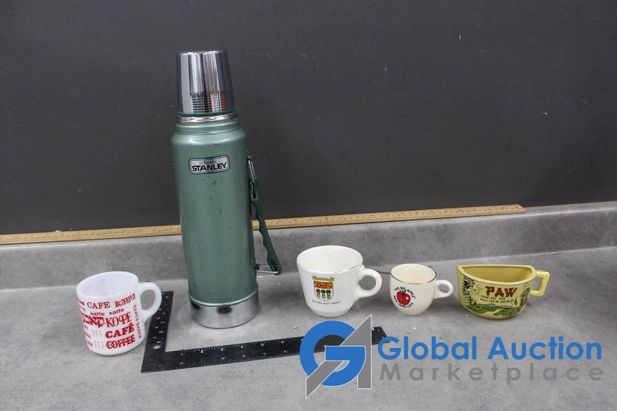 Aladdin Stanley Thermos and (4) Assorted Cups