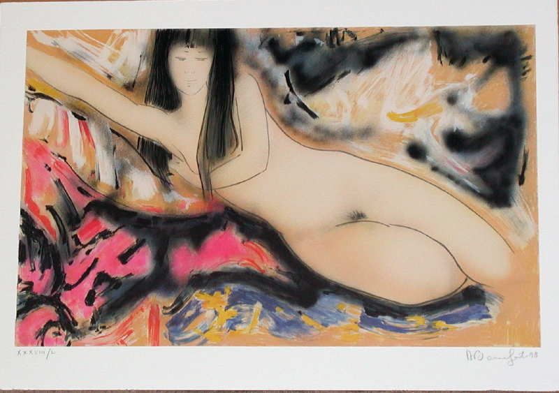This beautiful, original lithograph, printed in France, by the world famous contemporary French master of the nude is 20x27 in. and signed in pencil by the artist and numbered in an edition of 50. Certificate of Authenticity furnished. Domestic shipping-$60, International depends upon location.