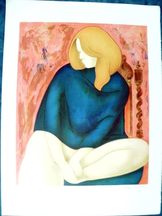 Artist: Alain BonnefoitTitle: Portrait in BlueYear: 1980Medium: Color Lithograph (Water-Marked "Arches France")Signature: In pencil, bottom rightEdition: Printers proofSize: 30" x 22"Condition: Very good, no repairs, never framedBiographyAlain Bonnefoit was born in Paris, May 18, 1937, and over the last 35 years has become well-known as an important and talented figurative painter. In 1953, Bonnefoit entered lEcole des Arts Applique and lEcole des Beaux Arts in Paris. From 1959 to 1960, he studied Engraving and Sculpture at lEcole des Beaux Arts in Brussels. In 1962, he returned to Paris and studied sculpture with the renowned Volti. Alain Bonnefoit has had major exhibitions throughout the world, including France, Italy, Belgium, Luxembourg, Switzerland, Japan, Tahiti, and the United States.*Retrieved from: http://rogallery.com/Bonnefoit/Bonnefoit_bio.htm