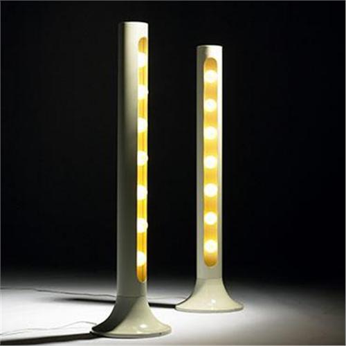 Alain Richard<BR>pair of floor lamps for the Alpine Station des Arc<BR>France, c. 1967<BR>enameled aluminum<BR>10.75 dia x 41 h inches<BR><BR>Condition of the item is not included in this description. Condition reports are available from Wright upon request. Wright strongly recommends that you review a condition report for each item on which you plan to bid.