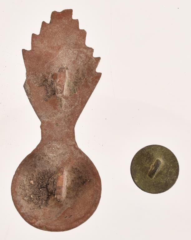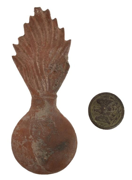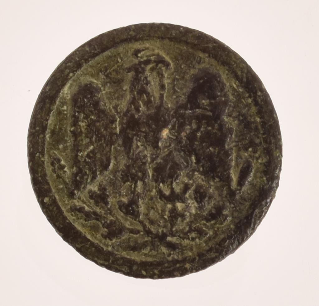 Small Mexican Officer's Button W/ Eagle & Flaming Bomb (Medium Size) Bronze Tone. With paperwork from 2008 excavation.