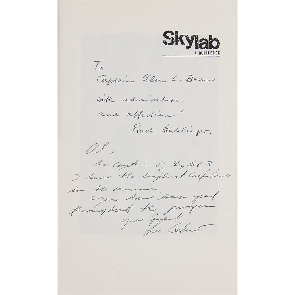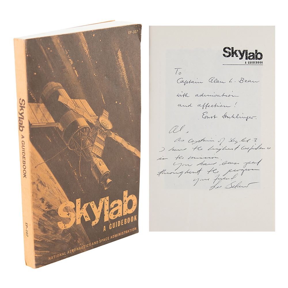 Alan Bean's official softcover NASA publication entitled "Skylab: A Guidebook (EP-107)," 245 pages, 5.5 x 9, signed and inscribed on the first free end page in black ballpoint, "To Captain Alan L. Bean, with admiration and affection! Ernst Stuhlinger" and "Al, As captain of Skylab-3, I have the highest confidence in the mission. You have been great throughout the program. Your friend, Lee Belew." In fine condition.