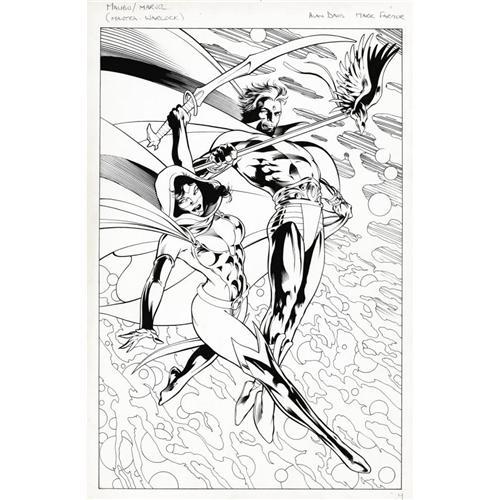 <B>Alan Davis and Mark Farmer - Ultraverse/Marvel Dream Team #1 Back Cover Original Art (Malibu, 1995).</B></I> Malibu Comics' Ultra warrior woman, Mantra, and Marvel's Adam Warlock, are captured in mid-flight by the extremely talented Alan Davis, in this back cover page from <B>Ultraverse/Marvel Dream Team</B></I> #1. Capably inked by Mark Farmer, this art has an image area of 10" x 15" and the condition is Excellent.<BR><BR><b>Shipping:</b> Small Flat (<a target="_blank" href="http://www.heritageauctions.com/common/shipping.php">view shipping information</a>)