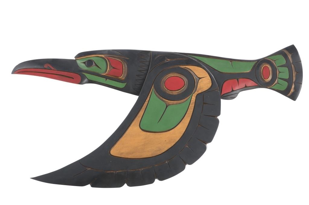 Featured in this lot is this Alan Hope yellow cedar thunderbird totem circa late 1900s. In the majority of Native American cultures, ravens play an important role. It is revered as both a trickster figure and the source of light. The raven represents the ultimate creator of everything that existed before the beginning since it is the creator of light. The raven is regarded as a trickster figure who inspires mischief and mayhem. Despite being recognized as the "creator" of life, one of Raven's stories portrays him as a cunning and avaricious character who teaches life lessons while operating primarily for his own gain. The Native American tribes were thankful that Raven held the key that allowed them to access many of life's treasures.