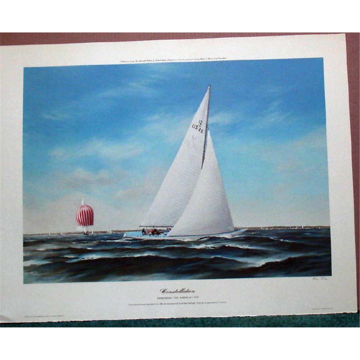A beautiful rendition of the yacht Constellation defending the America’s cup in 1964 by the well known American artist, Alan Price (1926-2002). Published by The Newmarket Gallery of Newtown Square, PA in 1974 and printed by Triton Press of NYC, this print depicts Constellation beating the British challenger, Sovreign on the final beat home. 23x29 in., signed in pencil by the artist and marked AP. Domestic shipping $20, International depends upon location.