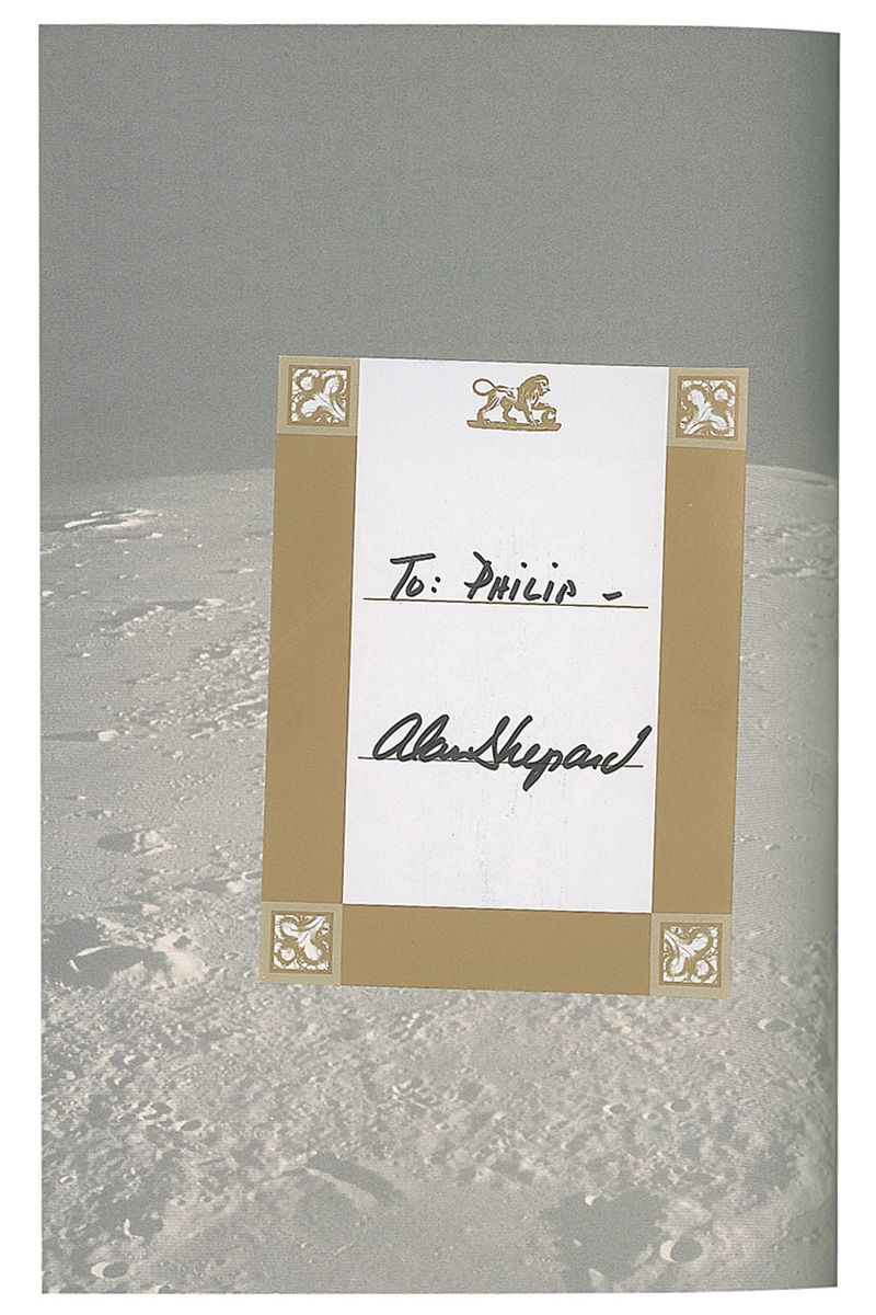 Signed book: Moon Shot. First edition, first printing. Atlanta: Turner Publishing, Inc., 1994. Softcover, 6 x 9, 383 pages. Signed on a bookplate affixed opposite the title page in black felt tip, “Alan Shepard,” and secretarially inscribed, “To: Philip.” In fine condition.