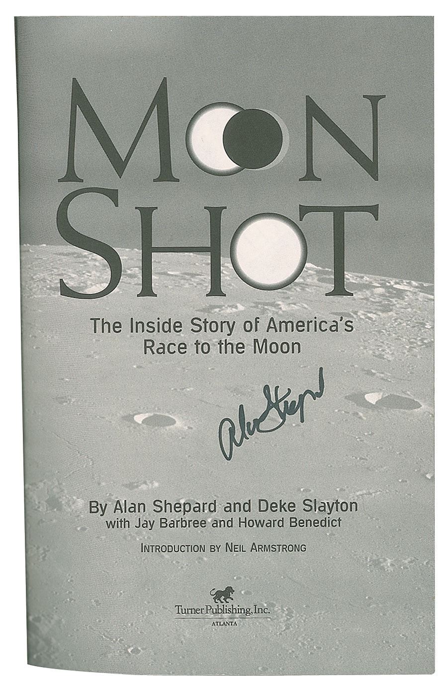 Signed book: Moon Shot. First edition. Atlanta, GA: Turner Publishing, 1994. Hardcover with dust jacket, 6.5 x 9.25, 383 pages. Signed on the title page in black felt tip by Alan Shepard. In fine condition.