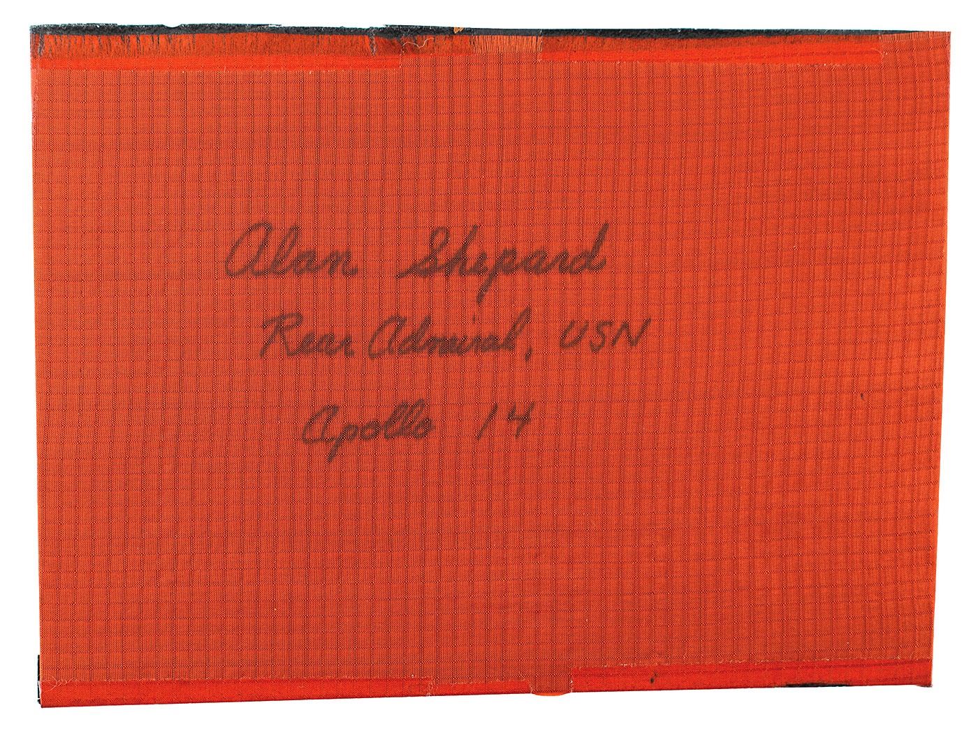 Amazing 8.25 x 6.25 swatch of re-entry parachute presumed to be flown on the Apollo 14 Command Module Kittyhawk, which splashed down in the South Pacific Ocean on February 9, 1971, signed in black felt tip by the mission commander: “Alan Shepard, Rear Admiral, USN, Apollo 14.” In fine condition, with tape strips to borders. Accompanied by an Apollo 14 mission patch and a full letter of authenticity from Zarelli Space Authentication for the autograph.