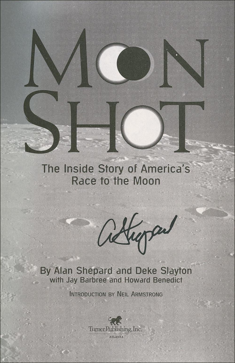 Signed book: Moon Shot. First edition, first printing. Atlanta: Turner Publishing, 1994. Softcover, 6 x 9, 383 pages. Signed on the title page in black felt tip. In fine condition, with some light soiling to fore-edges, green label affixed to spine, and pencil notation to first free end page. Pre-certified Scott Cornish and RRAuction COA.