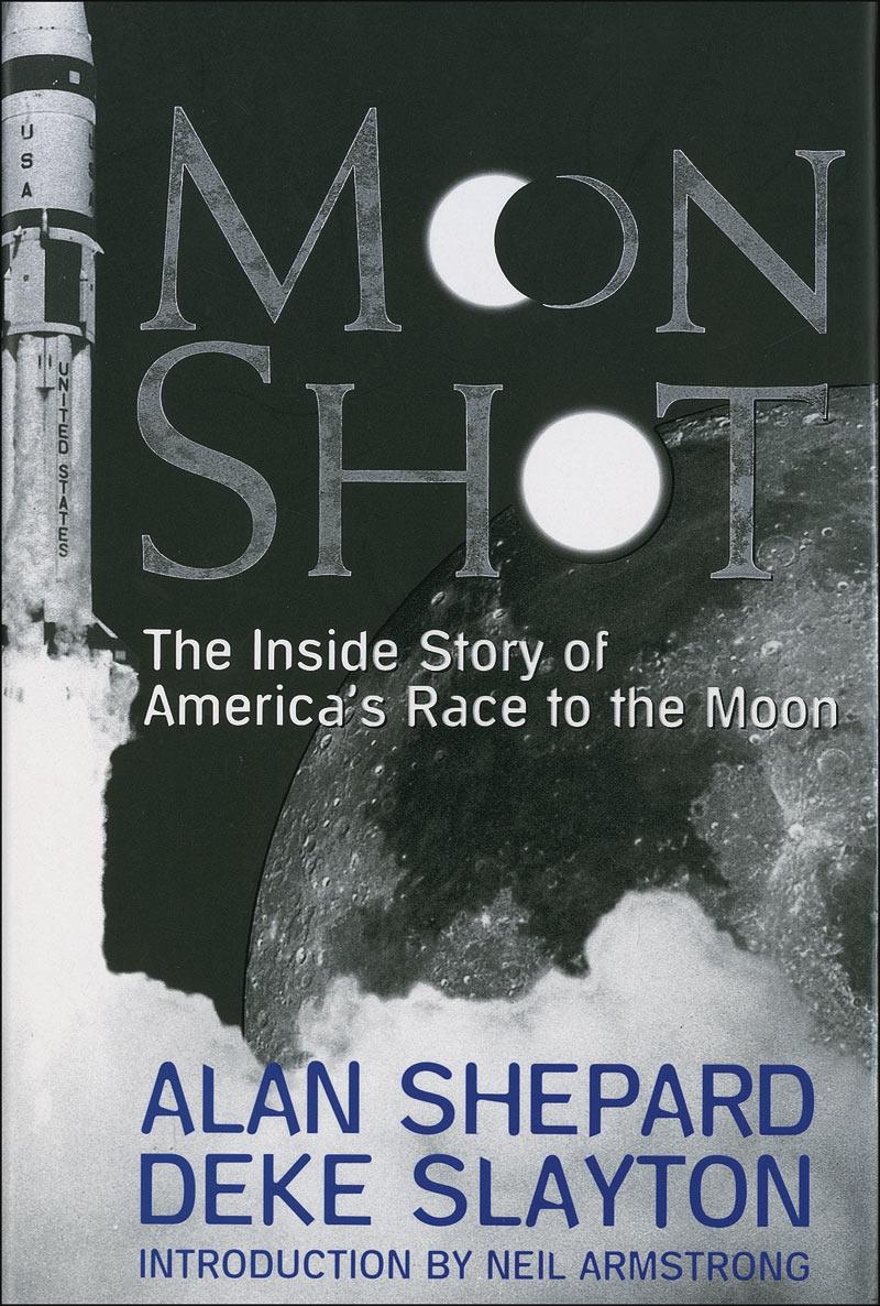 Signed book: Moon Shot. First edition, later printing. Atlanta: Turner Publishing, 1994. Hardcover with dustjacket, 6.5 x 9.25, 383 pages. Signed in blue felt tip, “A. Shepard,” on a bookplate affixed to the first free end page. In fine condition, with three smudges to the bookplate.