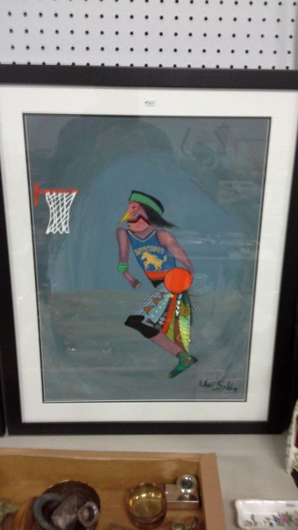 Alan Syliboy Original Framed Acrylic Sports Artwork Mustangs Basketball Scene
